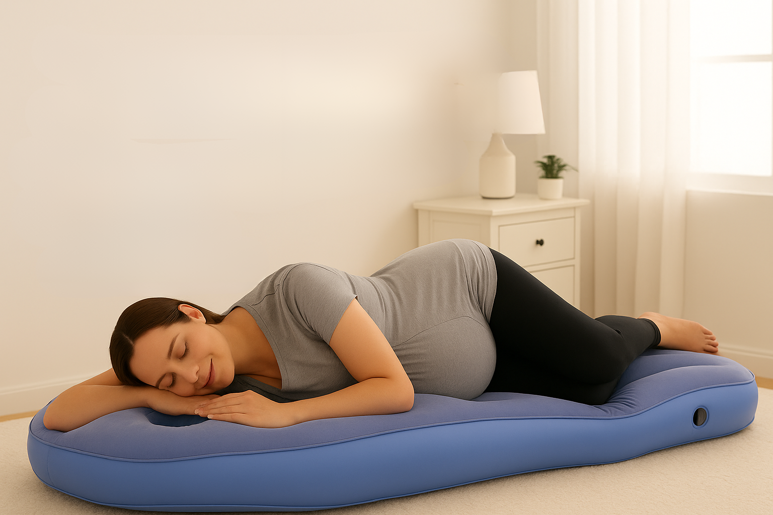 With Lucova's BodyHaven, your bump is supported in a soft cut-out that makes lying on your stomach safe, natural, and relaxing.